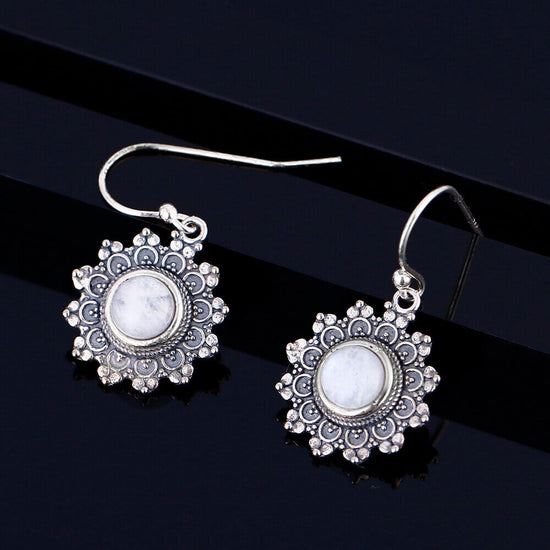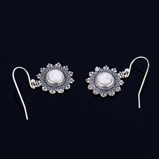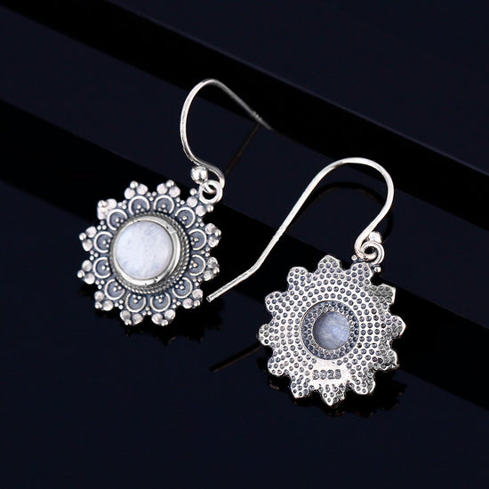 - Style : Boucles d’oreilles en forme de fleur accompagnées de sa pierre de lune au centre.