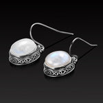 - Boucles d'oreilles style créole en pierre labradorite blanche.